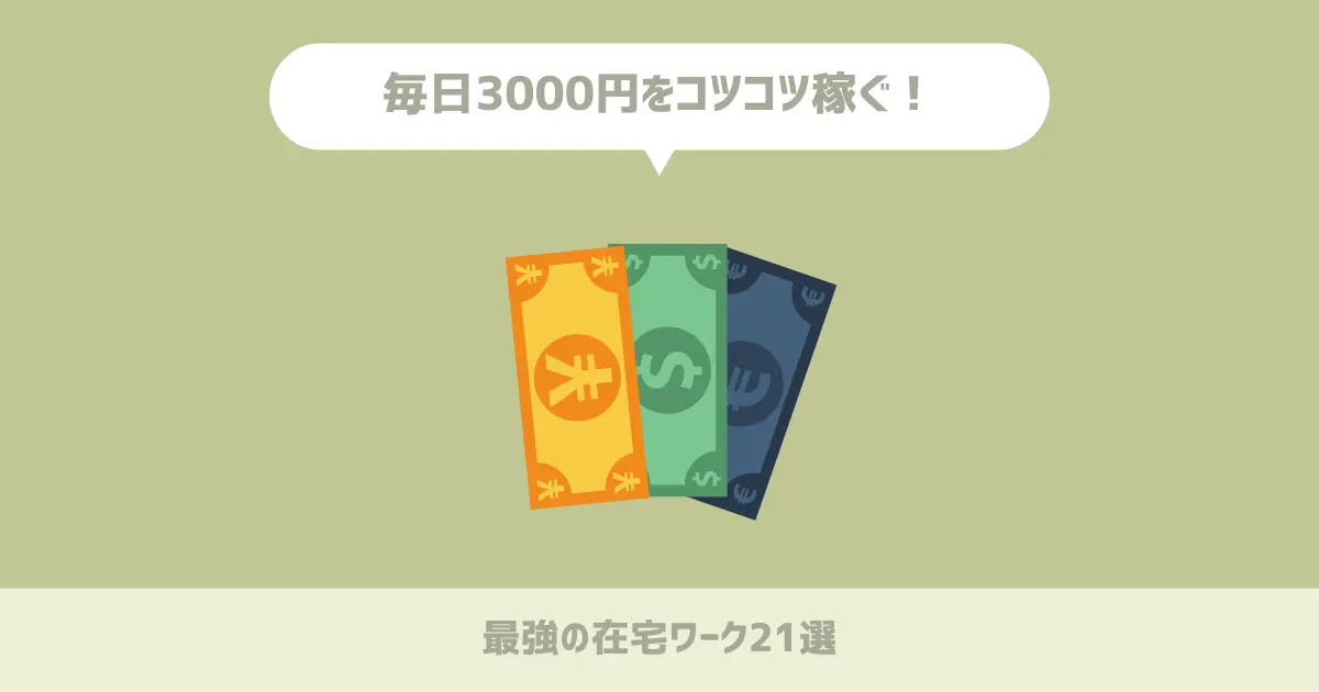 本記事では、在宅ワークを中心に毎日3000円を稼げる仕事をご紹介します。