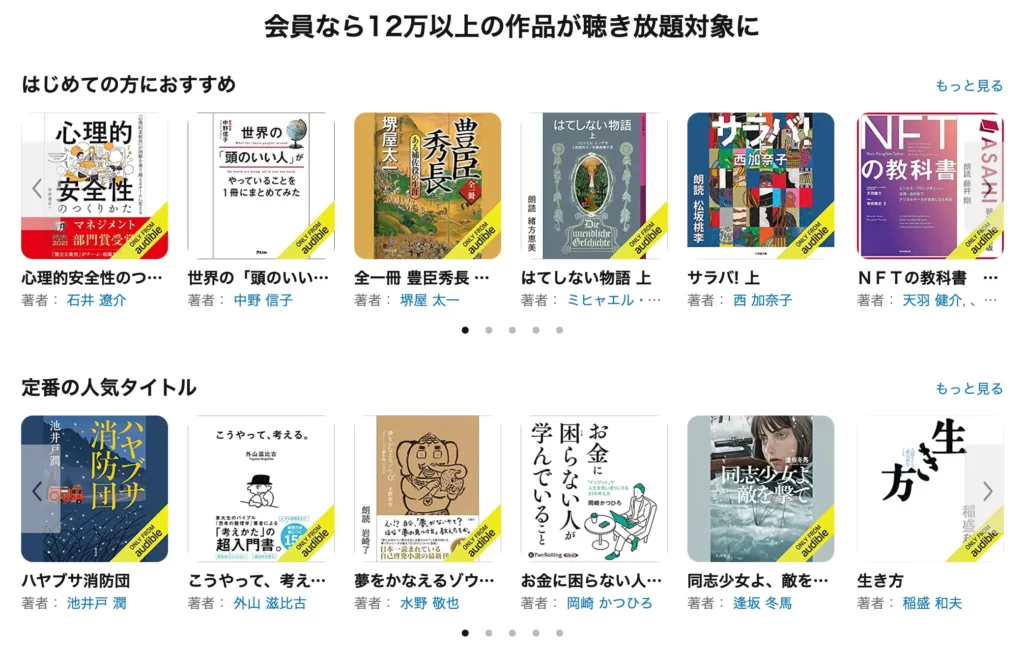 私が使って感じたことはAudibleを使ってみた感想でも紹介しているので、気になる方はご覧ください。