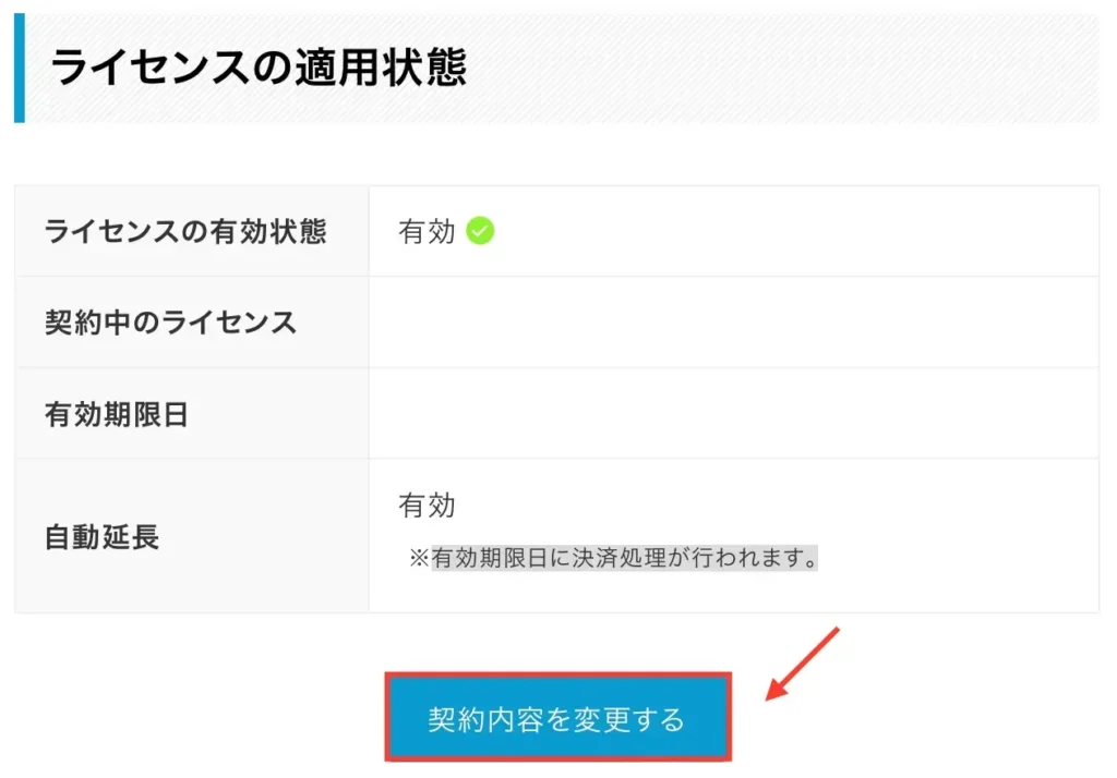 1:先ほどの画面から「ライセンスページへ戻る」をクリックします。